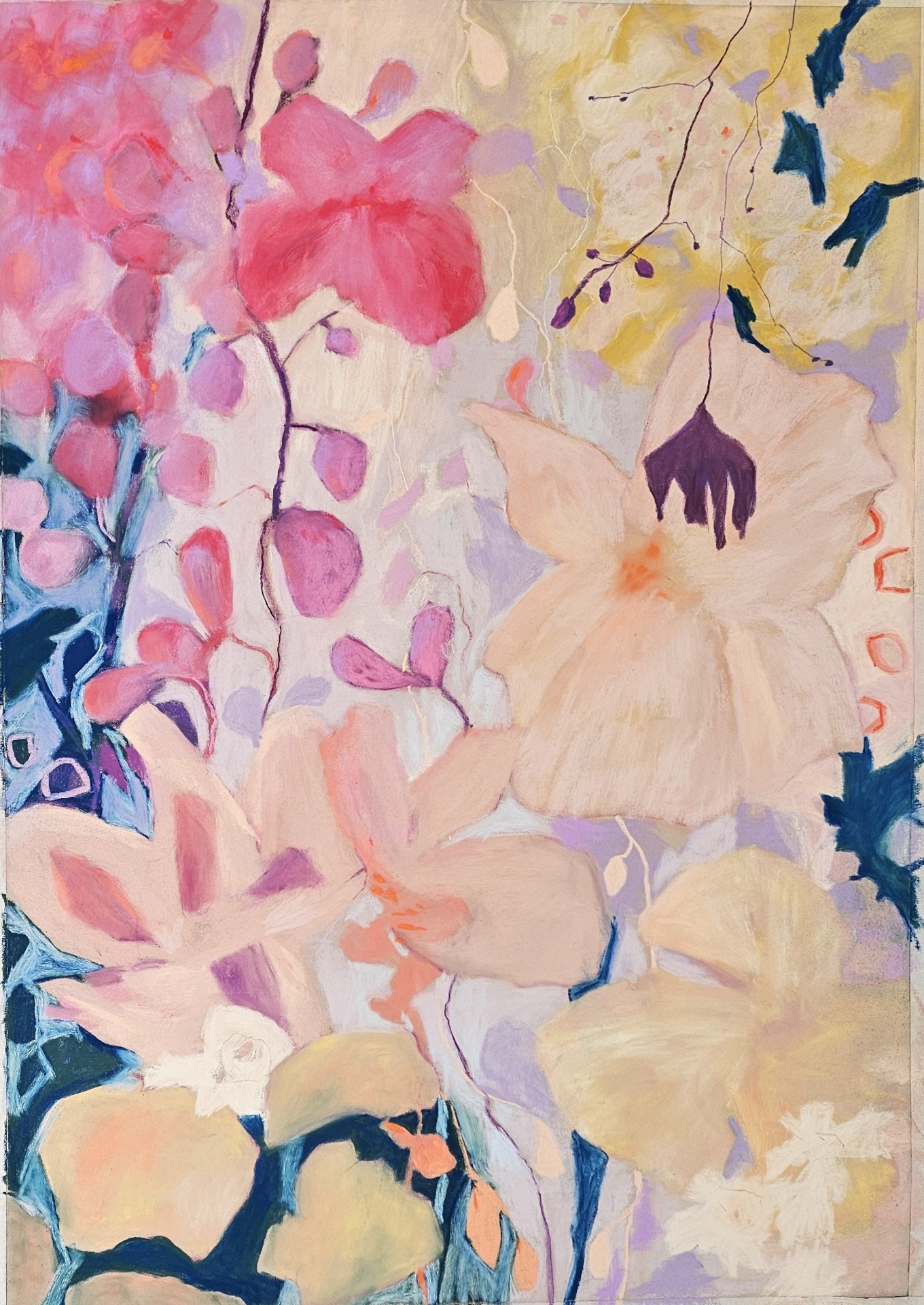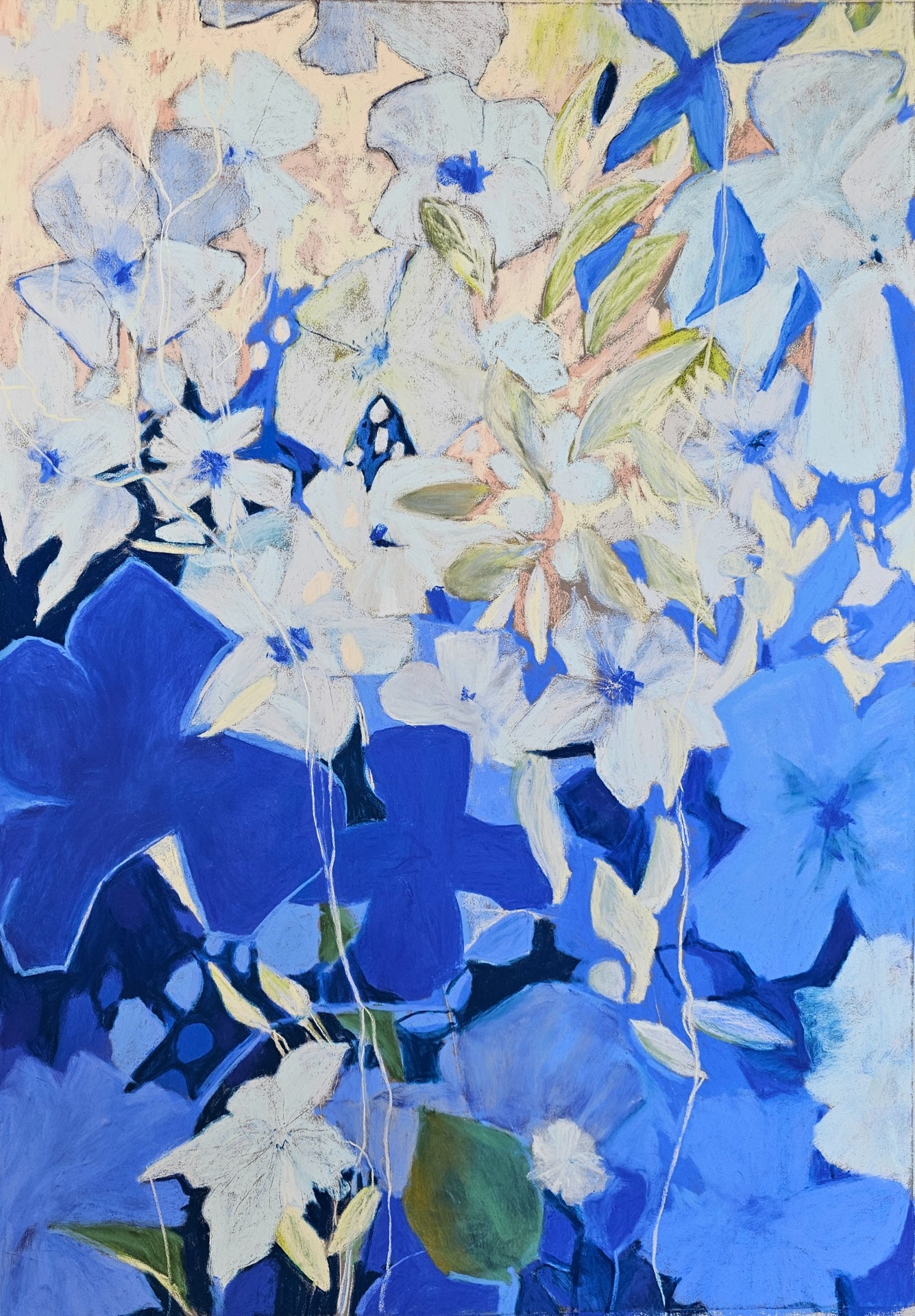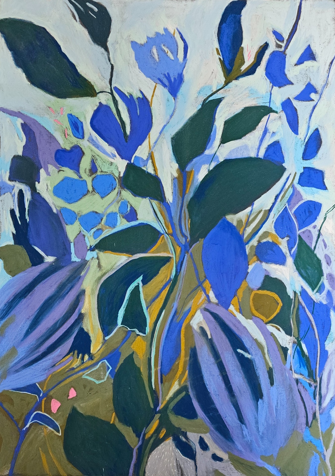Tørrpastell på Clairfontaine pastellkartong. Motivstørrelse 50x70 cm. Rammestørrelse 60x80 cm. Med passepartout, artglass og ramme i eik.